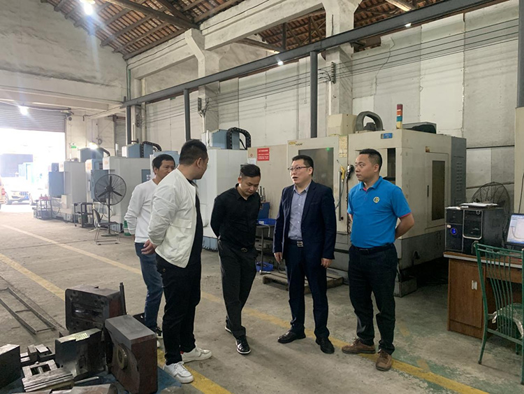 隨后又一同走訪了協會理事單位(佛山市匯能金屬制品有限公司),在交流中協會劉水義秘書長為理事單位匯能金屬制品有限公司牽橋引線,解決了機電機器進價高,質量劣質的困難,利用模具行業協會的大平臺為協會理事單位匯能金屬制品有限公司尋找到一家高質量的機電供應商,并以優惠的價格訂購制造機器,真正達到了資源共享,報團發展的宗旨。